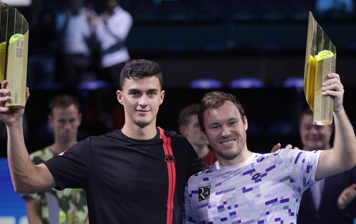 Erler/Miedler verabschieden sich hiermit sogar mit zwei ATP-Turniersiegen in Serie, denn erst in der vergangenen Woche hatten die beiden schon beim 250er-Event in Antwerpen triumphiert. Mit dem Selbstvertrauen von sieben Siegen in Folge im Rücken starteten sie ins Endspiel wesentlich besser als ins Semifinale am Nationalfeiertag. Die beiden holten ihre ersten zwei Aufschlaggames jeweils über den Entscheidungspunkt, schlugen selbst sogleich bei ihrer ersten Chance als Rückschläger zum 3:2 zu. Doch aus der 4:2-Führung wurde noch ein 4:6, weil Erler/Miedler nach 40:15 bzw. 30:0 zwei durchaus vermeidbare Serviceverluste bei 4:3 und 4:5 kassierten. Die heimische Erfolgskombo fing sich jedoch gleich zu Beginn des zweiten Satzes wieder, erspielte sich im ersten Game ein 0:40, ehe Skupski beim Entscheidungspunkt nachhalf und per Doppelfehler vollendete. Nun legten Erler/Miedler wieder den höchsten Gang ein, zogen sogar auf 3:0 mit einem Doppelbreak und 40:30 davon. Es wurde aber nochmal kurz knapp: Einem Rebreak zum 3:1 folgte bei 4:3 und 30:40 fast ein weiteres. Die beiden zogen allerdings ihren Kopf aus der Schlinge, sicherten sich in einem spektakulären Returngame das Doppelbreak zum Satzausgleich, spielten sich nun geradezu in einen Rausch und machten dort im Match Tiebreak weiter, das der Perfektion nahekam. Erler/Miedler zogen gleich auf 5:0 davon und ließen keinen Zweifel mehr über die Siegerpaarung aufkommen.