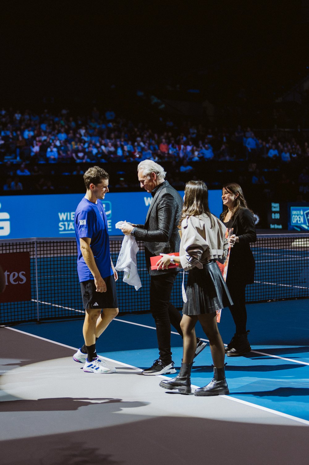 „In erster Linie verliere ich einen Freund auf der Tour, aber wir haben natürlich auch die größten Matches zusammen gespielt. Aber es ist ein ‚Auf Wiedersehen’ und kein ‚Tschüss’ . Ich hoffe, dass ihm in ein, zwei Jahren langweilig wird und er noch einmal zurückkommt auf die Tour“, drückte Zverev aus, was sich wohl viele Thiem-Fans wünschen. Damit war die Show aber noch lange nicht vorbei. Es folgte ein One-Shot-Cup, bei dem jeweils nur ein Punkt gespielt wurde. Teilnehmer waren Freunde und Wegbegleiter wie Boris Becker, Tommy Haas, Frances Tiafoe, Nicolas Massu, Gregor Schlierenzauer oder Jack Draper, der am Ende auch gewann.