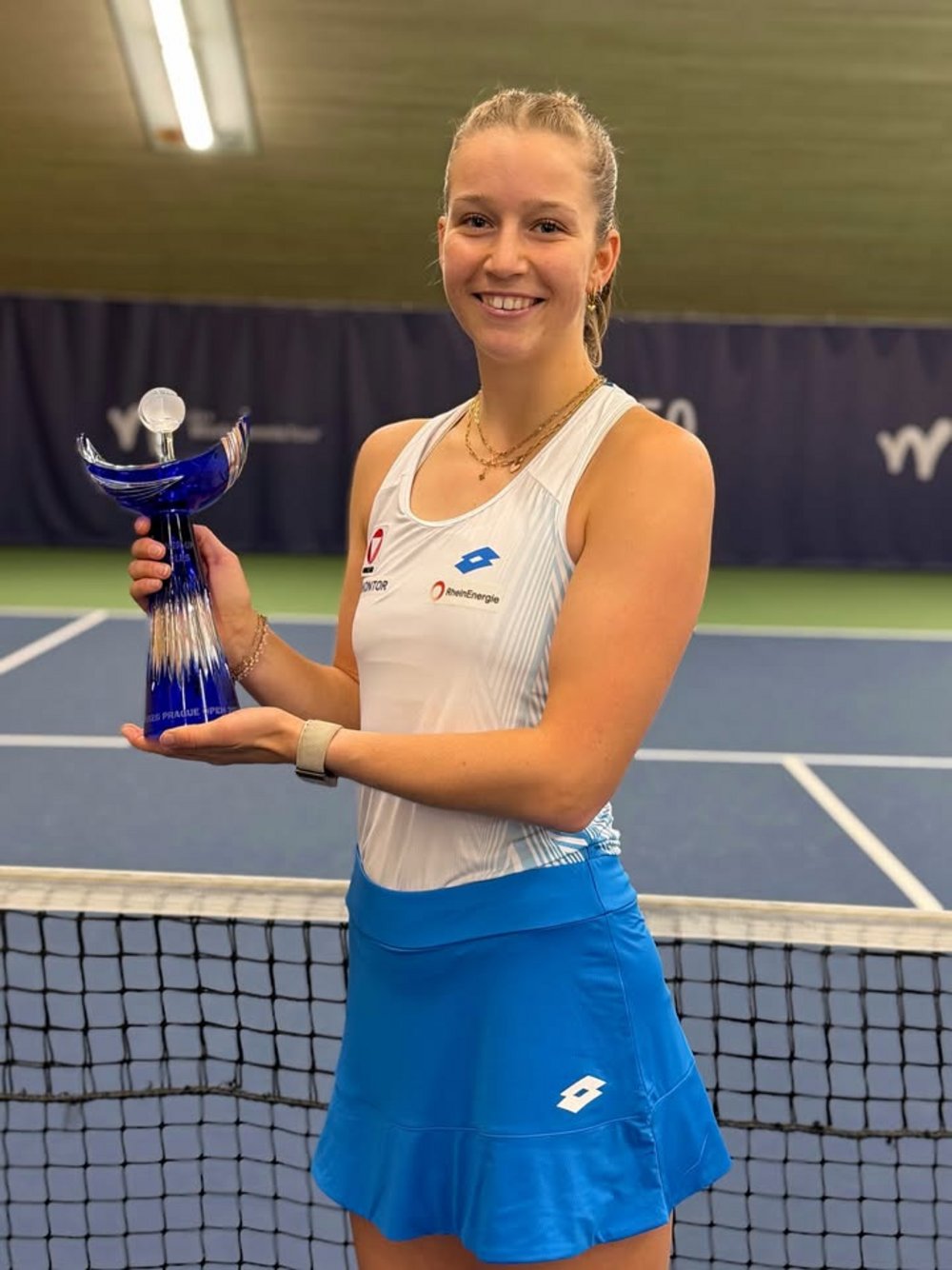 Sinja Kraus mit dem Pokal für den zweiten Platz.