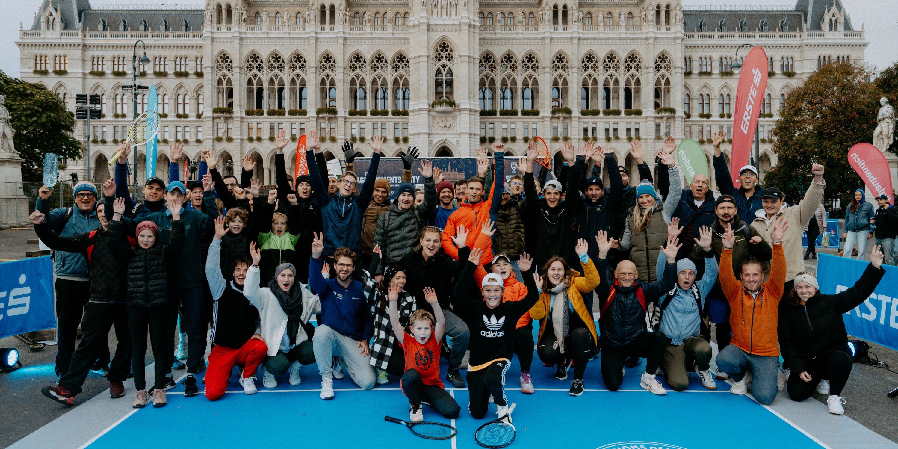 Anlässlich von „50 Jahren Tennis in Wien“ gestalteten die Erste Bank Open am Donnerstag, 17. Oktober, den Rathausplatz in einen riesigen Tennisplatz um. Mehrere Minicourts luden Tennisspieler:innen zum gratis Spielen ein – ob Match, Training oder einfach zum ersten Mal zum Schläger greifen: Hier waren alle willkommen.