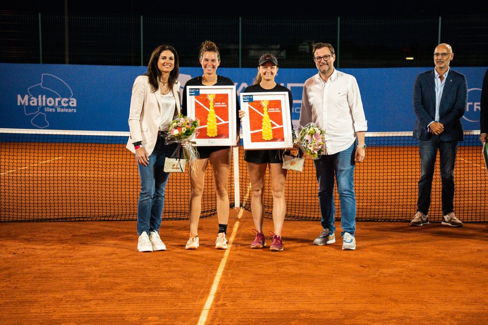 Die Siegerinnenehrung im Doppel, von links nach rechts: Gabriela Sabatini (Tennislegende), 1. Jesika Malecková und Miriam Skoch, Marcos Taboas (Fundació Turisme Responsable de Mallorca).
