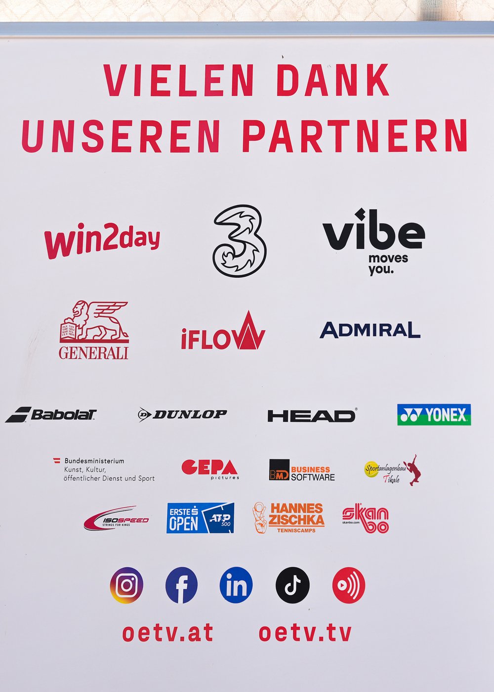 Am Halbfinaltag am 30. August stand im Better Tennis Center Alt Erlaa beim Alt Erlaaer TC, einer traditionsreichen Location, die von der Better Tennis Academy betrieben wird und eng mit Wolfgang Thiem, Vater von Grand-Slam-Sieger Dominic Thiem, kooperiert, neben dem Sport auch das Netzwerken im Mittelpunkt. Beim VIP-Tag in der Sports & Business VIP Lounge des ATC trafen sich bei ausverkauftem Haus rund 200 geladene Gäste aus Sport, Wirtschaft und Medien zum Networken, Unterhaltung und einem attraktiven Rahmenprogramm. Dementsprechend bestens gefüllt war der eigens mit Tribüne installierte Center Court. Mit dabei waren unter anderen Fußballlegende Toni Polster, Rechtsanwalt Dr. Manfred Ainedter, Mediaprint-Mann Michael Tillian, Ronald Düller (PKE), Austria-Wien-Fußballer Andreas Gruber und Andreas Kirnberger (WKO). Ein hochwertiges Catering von DoN, Live-DJ powered bei kronehit und persönliche Begegnungen mit den Profis machten den Tag zu einem gesellschaftlichen Höhepunkt. Für Sponsoren bot der Event eine ideale Bühne, um Kontakte zu knüpfen und ihre Marke in einem attraktiven Umfeld zu präsentieren. So wurde auch ein Goldbarren von vion verlost.