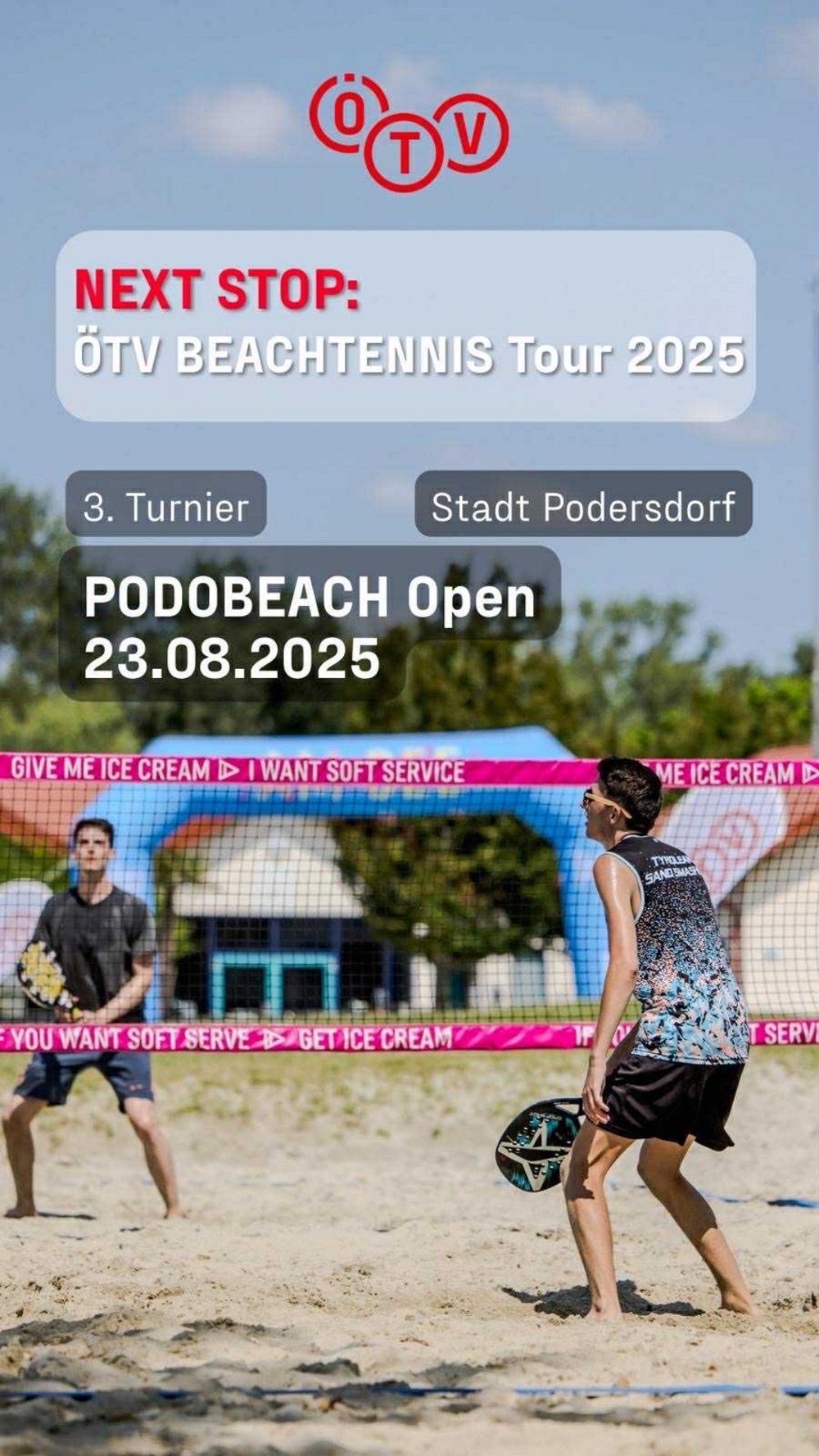 Und am zweiten Spieltag wird parallel der dritte und gleichzeitig letzte Stopp der ÖTV-Beachtennis-Tour 2025 abgehalten, die Podobeach Open. Sowohl Fortgeschrittene als auch Beginner:innen sind hier am Start. DJ Mikky Mouth und coole Drinks sorgen für eine sportliche Beachparty-Atmosphäre. Anmeldungen sind noch möglich.